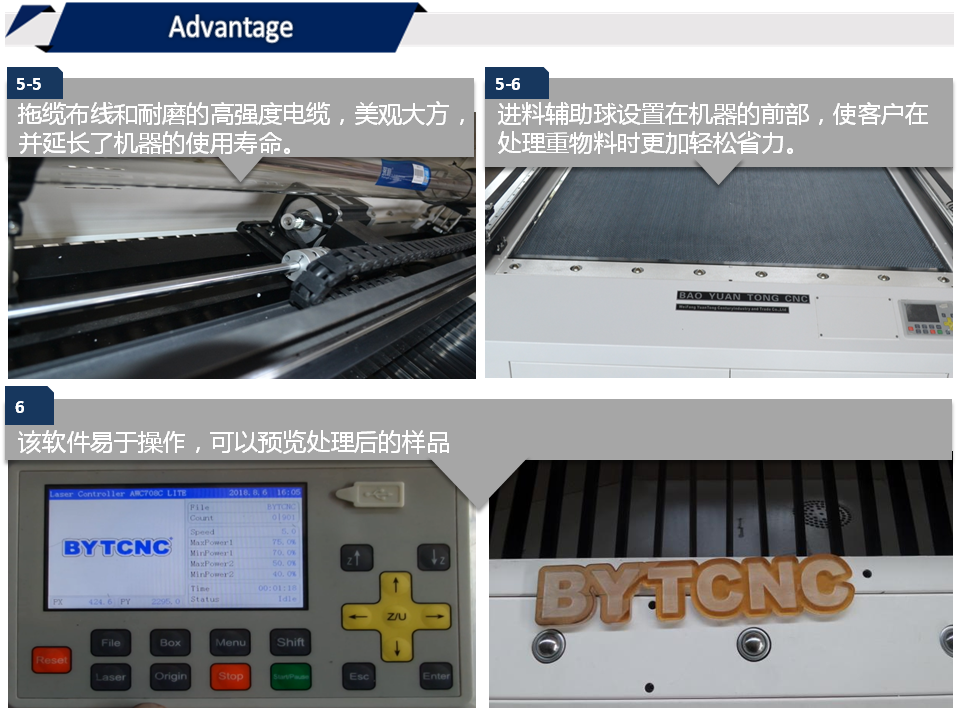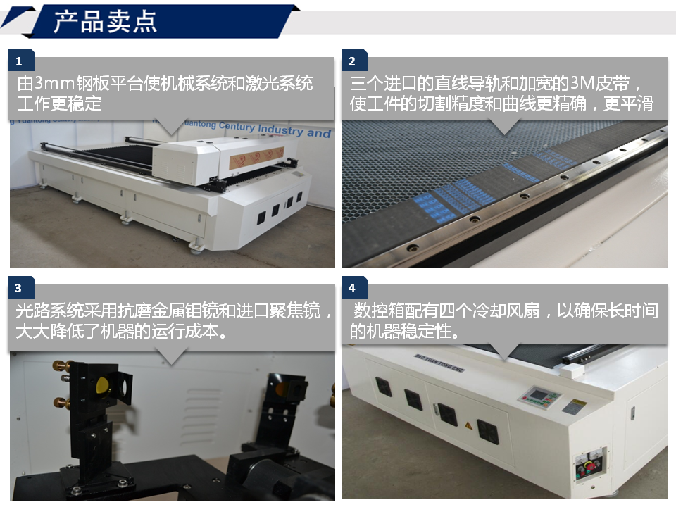 3.采用三條進(jìn)口直線導(dǎo)軌,3M同步帶和使用美國芯片的驅(qū)動器,配合大扭距同步電機(jī),使加工物的切割精度和曲線更加精準(zhǔn)平滑;