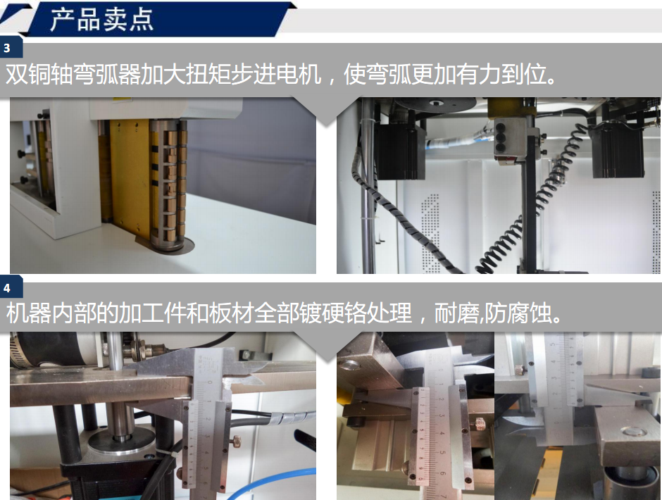 3. 雙銅軸彎弧器加大扭矩步進(jìn)電機(jī),使彎弧更加有力到位。